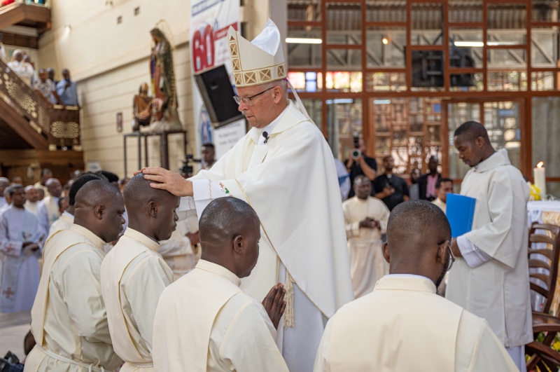 In his homily, Archbishop Van Megen reminded the candidates that the diaconate is not merely a transitional step toward priesthood, but a profound participation in Christ’s own ministry of service. He invited them to root their identity in Christ the Servant, who came not to be served but to serve. Emphasising the threefold ministry of the deacon—proclaiming the Word, assisting at the altar, and serving the poor—he encouraged them to cultivate humility, pastoral charity, and fidelity to the Gospel in every dimension of their lives.